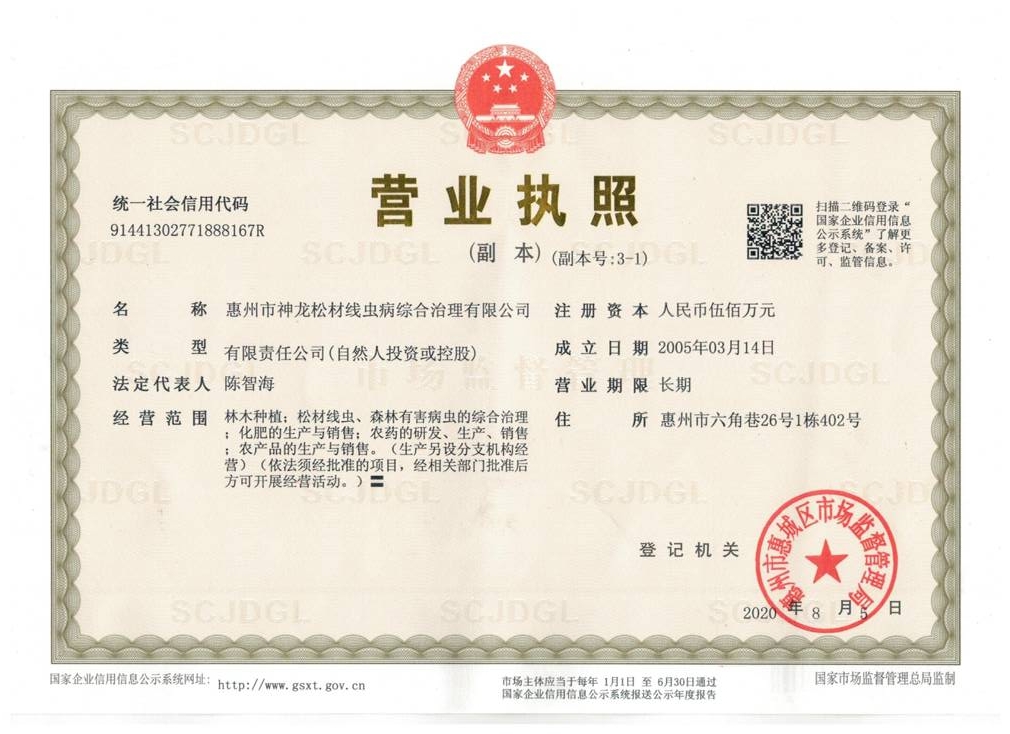 11-23熱烈祝賀惠州市神龍松材線蟲病綜合治理有限公司網(wǎng)站上線